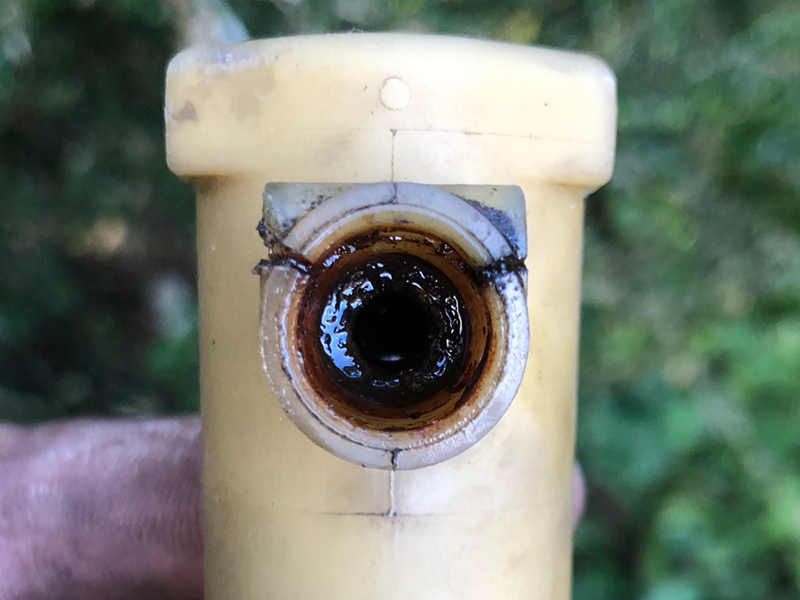 De mon côté c'est le plastique à la jonction entre durite et piston qui est cuit