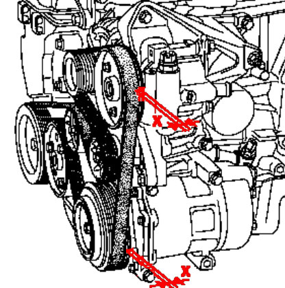 on vois bien que la poulie de la pompe est plus vers l'interieur et la courroie est de travers