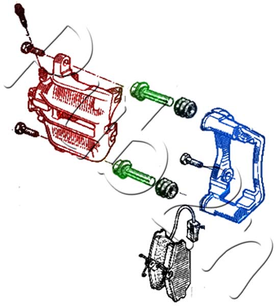 Ce sont les axes (en vert) qui servent à faire coulisser la chape (en bleu) sur l'étrier (en rouge) ;)