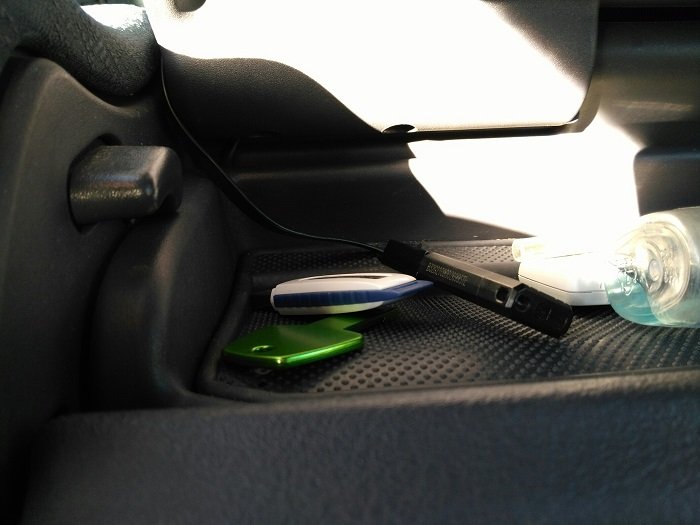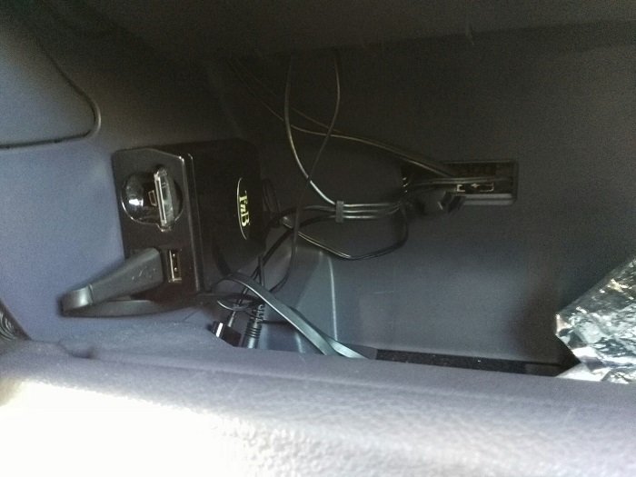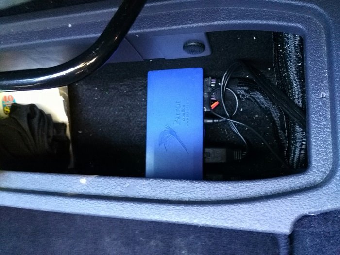 J'ai fait un petit trou, pour passer la prise usb du kit parrot dans la boite à gants du haut, plus facile d'accès.