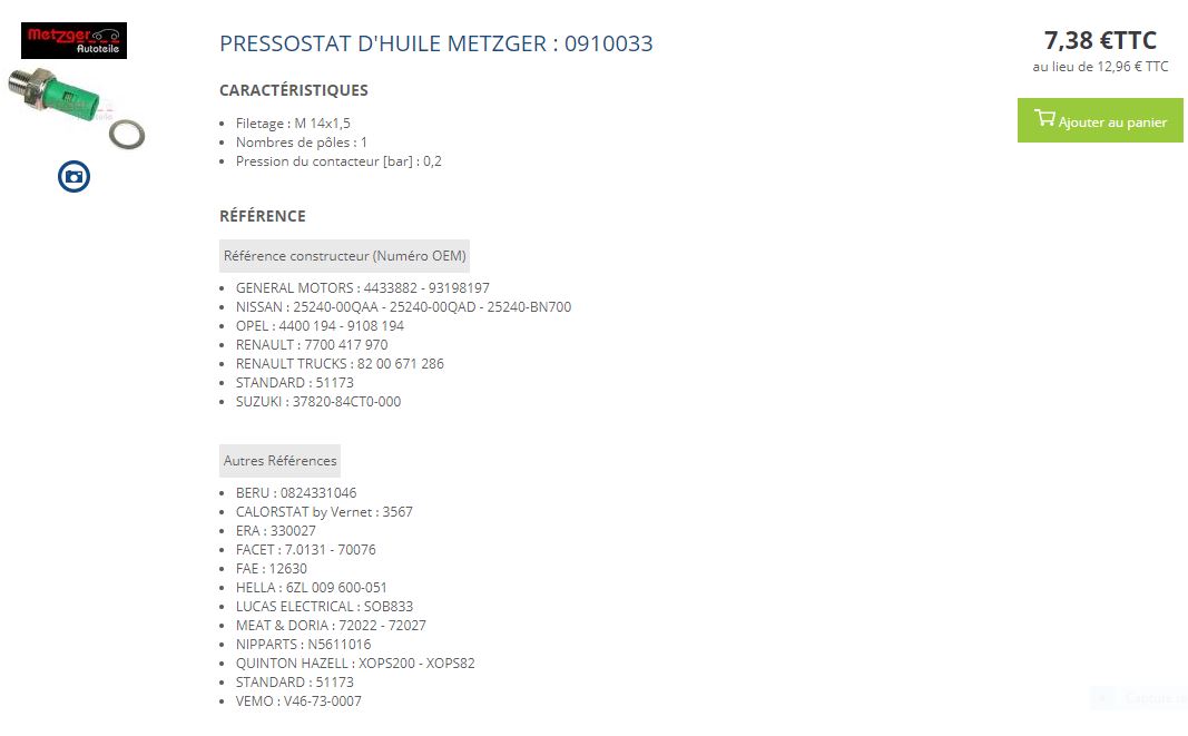 C'est bien le capteur de pressiin d'huile et il est dispo chez chez oscaro