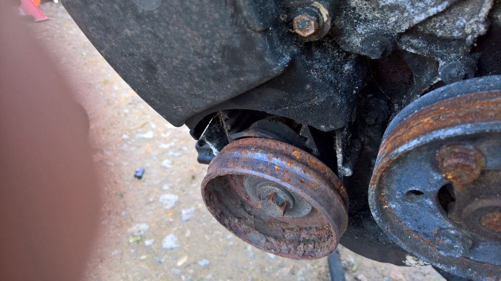 Récemment j'ai démonté la pompe de DA pour un formeur en galère, je détends la courroie d’accessoires, (bien tendue !) et bling j’entends un bruit de ferraille qui chute au sol.