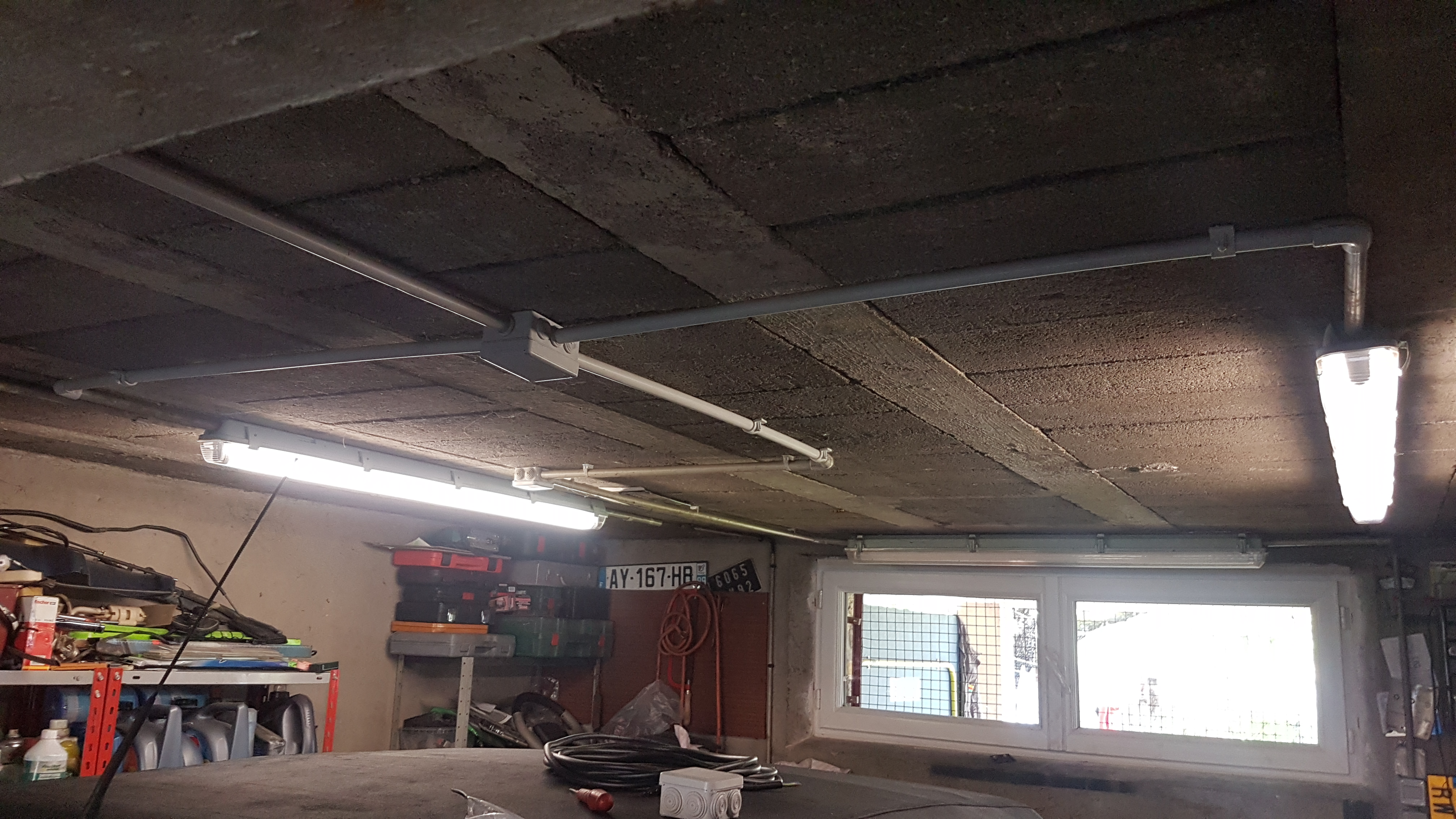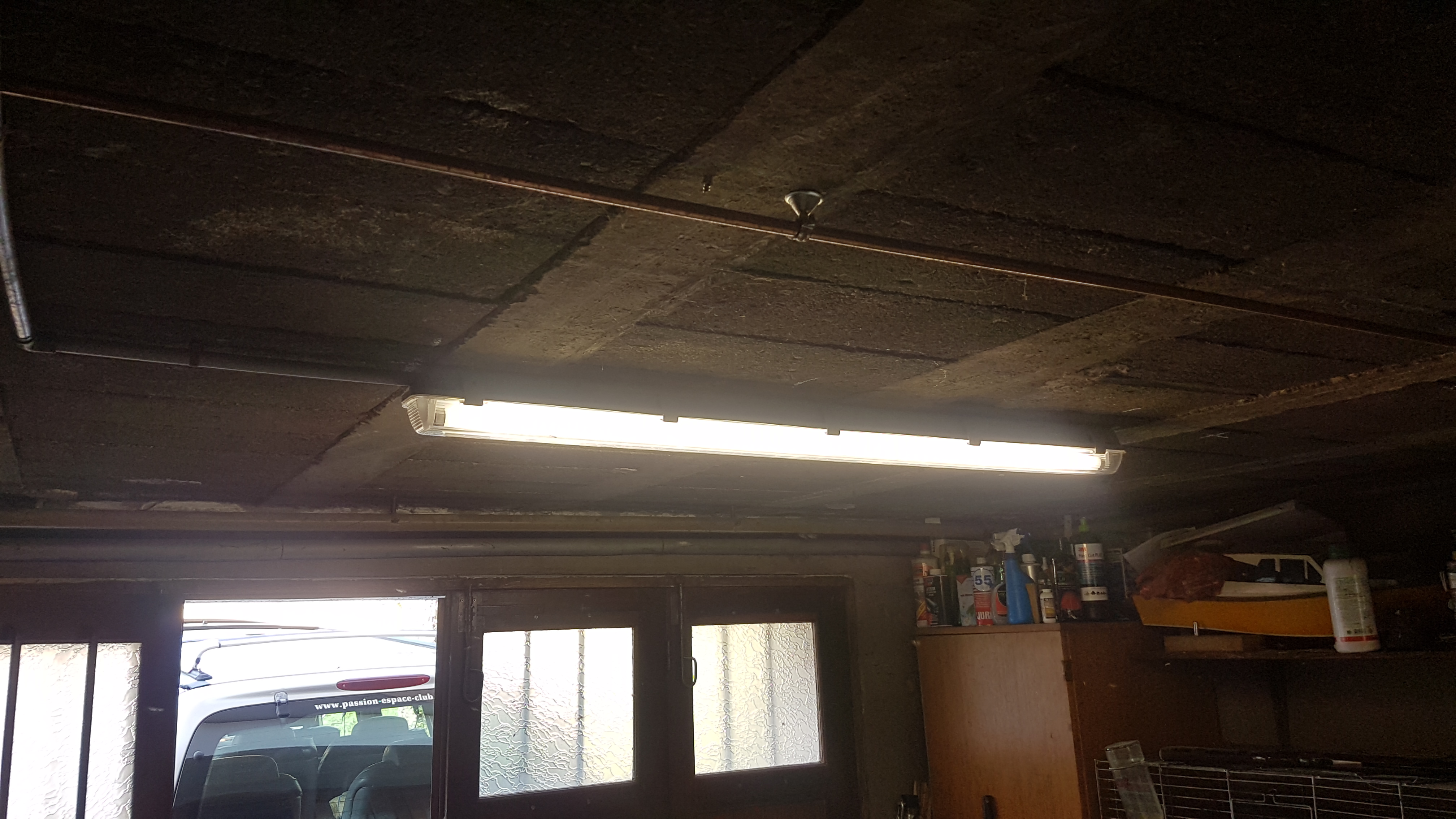 aujourd'hui modification de l éclairage de mon garage,,remplacement des 2 globes par 3 néons qui traînaient dans mes reserves