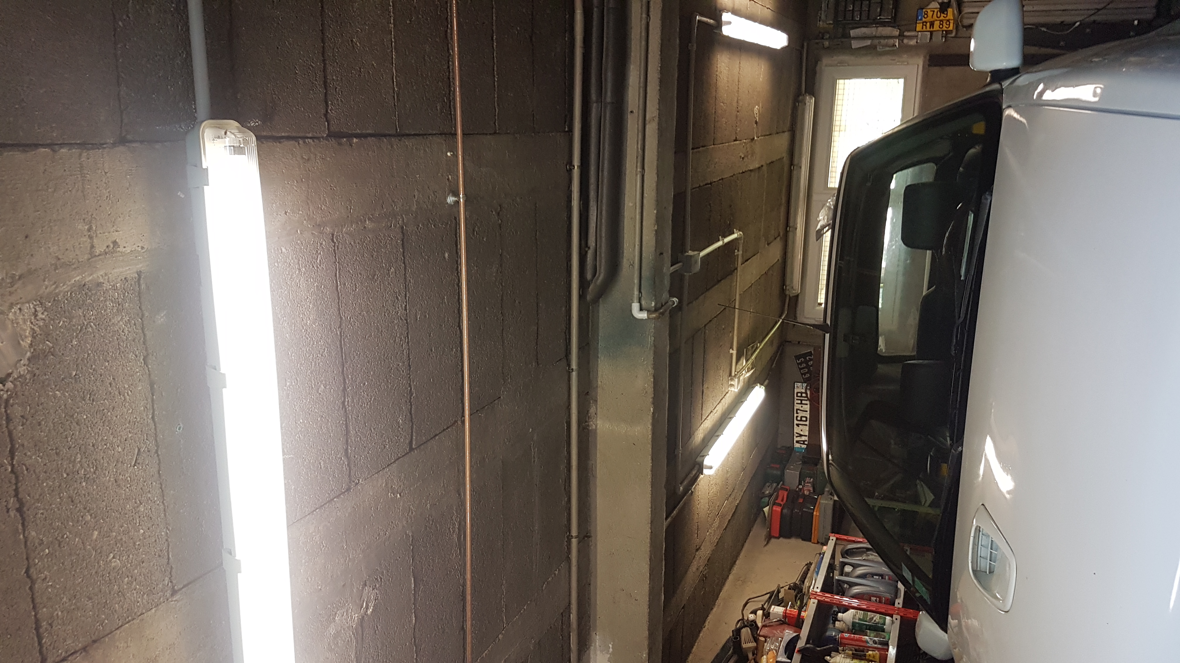 aujourd'hui modification de l éclairage de mon garage,,remplacement des 2 globes par 3 néons qui traînaient dans mes reserves