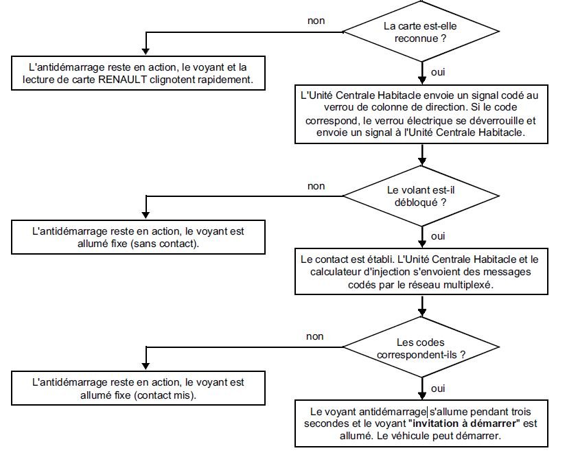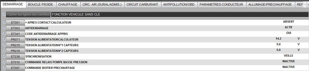 La carte est reconnue, le volant se déverrouille, d’après ce que j’ai pu comprendre il ne manquerait plus que le transfert de l’autorisation de démarrer de l’UCH vers le calculateur d’injection. Ceci explique peut-être l’état de ET001 et ET003.