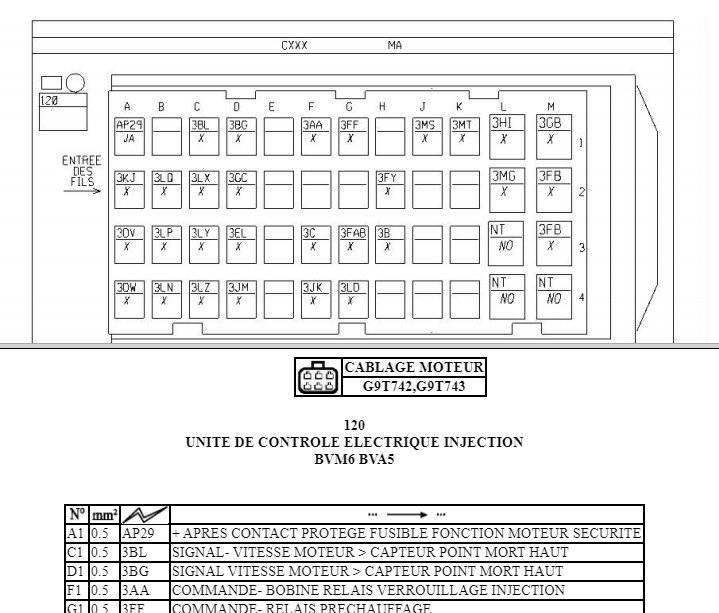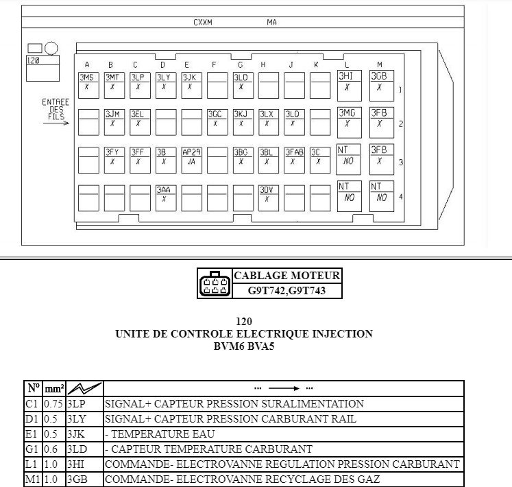 J'ai désormais toutes les docs mais elles sont bizarrement constituées d'une compilation de celles du moteur F9Q820 pour le calculateur et du G9T742/3 pour le circuit électrique afin qu'elles correspondent à ce que je vois sur le véhicule.