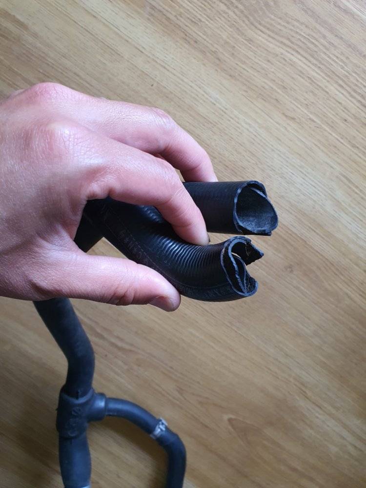 J'ai réussi à acceder à l'arrière en démontant le collecteur d'admission d'air. Collier difficile à enlever car accès quand même restreint... AVec une pince déportée c'est passé nickel. Bien sur la durite était bien soudée. Y'a plus qu'a trouver une nouvelle durite coudée pour la réparation.