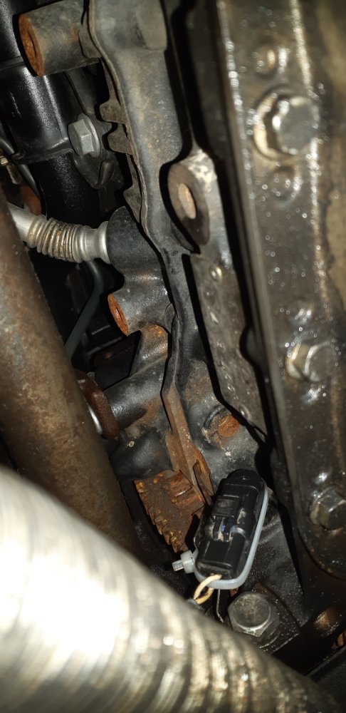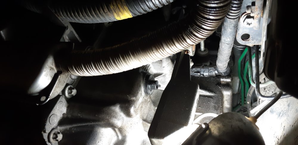 J'ai quelques soucis de fonctionnement moteur de mon véhicule, et ce soir, en me glissant dessous, je me rends compte que la connexion sur la photo est un peu "bancale" et mal enfoncée car les fixations plastiques ont lâché avec le temps.