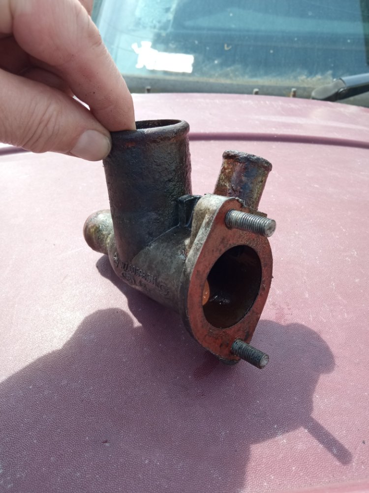 En démontant la pompe à eau, les pas de vis ont cédé sur cette pièce, boitier en bas, et derrière la pompe à eau.