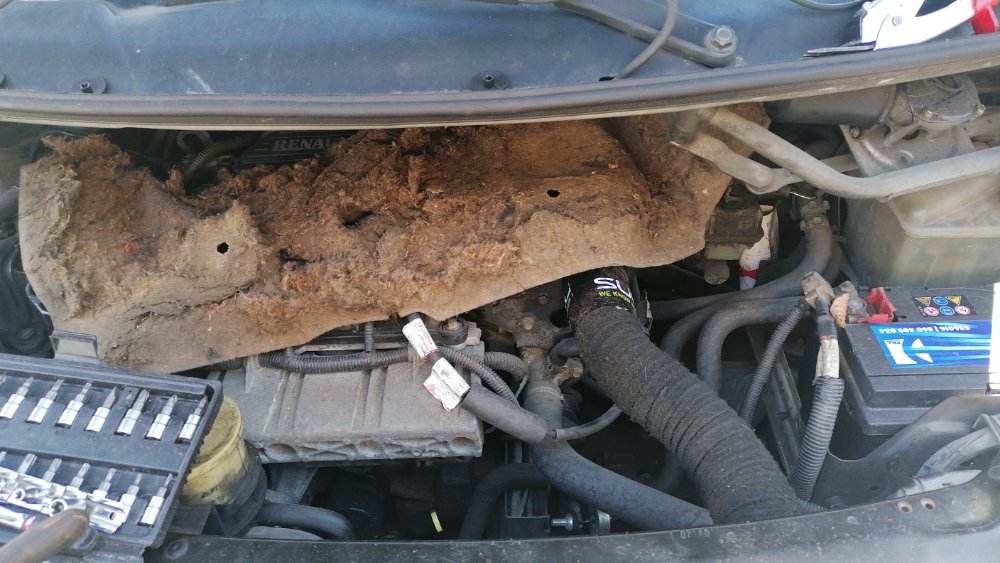 J'avais peur que le bruit soit trop présent dans l'habitacle, et en fait pas de problème sauf un bruit de "glou-glou" quand il pleutPas de fuite, et je n'ai pas repéré d'où venait ce bruit mais bon, le pare-chaleur ne pendouille plus sur le moteur