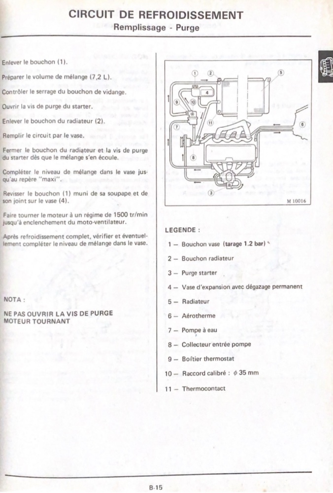 Voilà la procédure, deux bouchons à ouvrir donc, un sur le radiateur et un sur le carbu afin d'avoir une purge correcte :