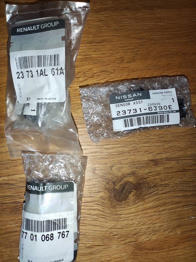 A la valise, il apparait que c'est un problème de déphaseurs d'arbre à came. Malheureusement, le garage a cherché des pièces sans pouvoir les trouver. Il n'y en a manifestement plus chez Renault. Comme cela dure, j'ai demandé au garage les références des pièces afin de tenter de les trouver sur le net. Il m'a donné deux références 23796EA20A et 23796EA20B qui sont clairement des références NISSAN (les mêmes que celles qui sont utilisés sur les véhicules NISSAN qui ont le même moteur). J'en ai donc trouvé sur plusieurs sites et surtout au Japon où l'on peut avoir des pièces d'origine NISSAN.