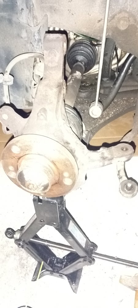Bon, il ne me reste plus que l'écrou central du moyeu pour sortir le cardan. Mais hélas ma douille de 32 n'est pas assez profonde pour accrocher l'écrou. Prochaine étape quand j'aurai trouver une solution a cette difficulté...