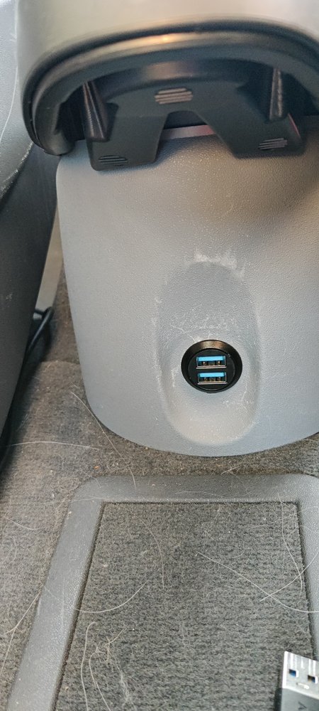 Ici le connecteur USB qui remplace la prise allume cigare sous la console centrale. Cela permet de connecter le smartphone à l'installation