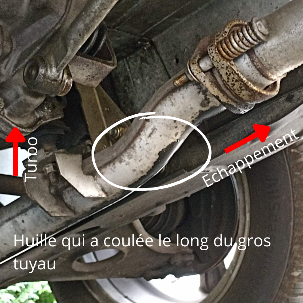 MAIS : hier en montant une longue côte et alors quelle fumait beaucoup je me suis arrêté, j'ai ouvert le capot pour verifier le liquide de refroidissement. Verdict, de la fumée blanche qui sort du turbo et une fuite d'huile au niveau du joint de descente vers l'echappement et le turbo (Il n'y avait pas avant mes problème).