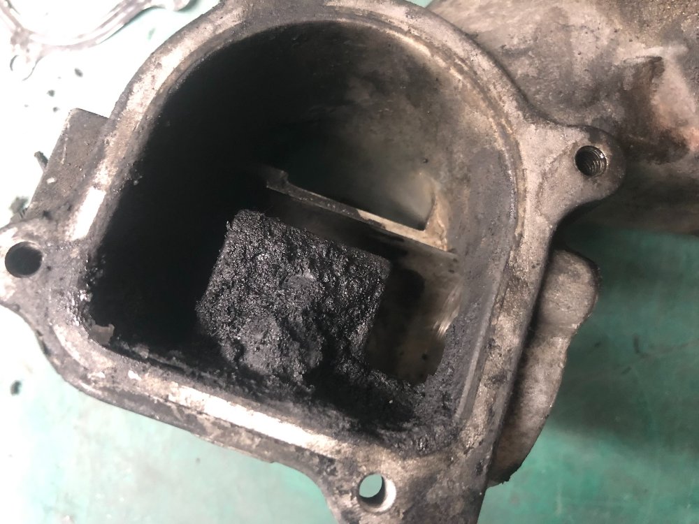 Je viens de déposer la vanne EGR ; elle devait être mûre car elle s'est ouverte en deux au démontage, les rivets de maintien ayant lâché.