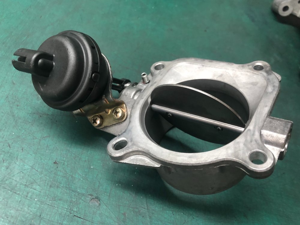 - Enlever les 4 boulons (douille de 10’’) de fixations du boitier papillon sur le boitier étouffoir (il faudra un petit cardan pour le boulon ARG)
