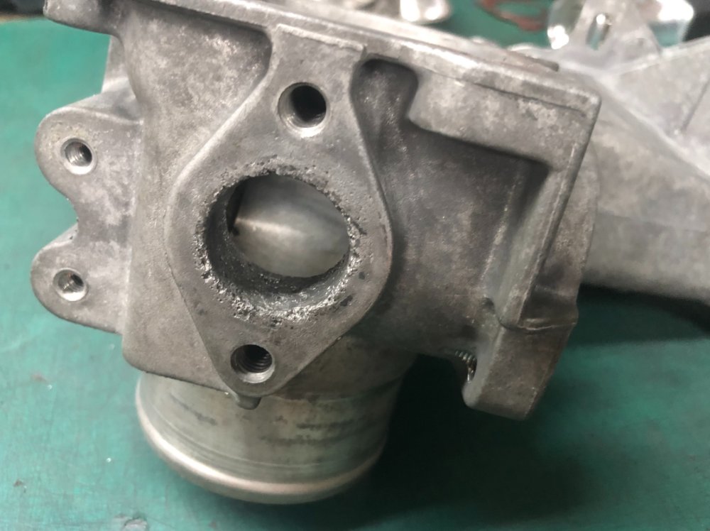 Je viens de déposer la vanne EGR ; elle devait être mûre car elle s'est ouverte en deux au démontage, les rivets de maintien ayant lâché.