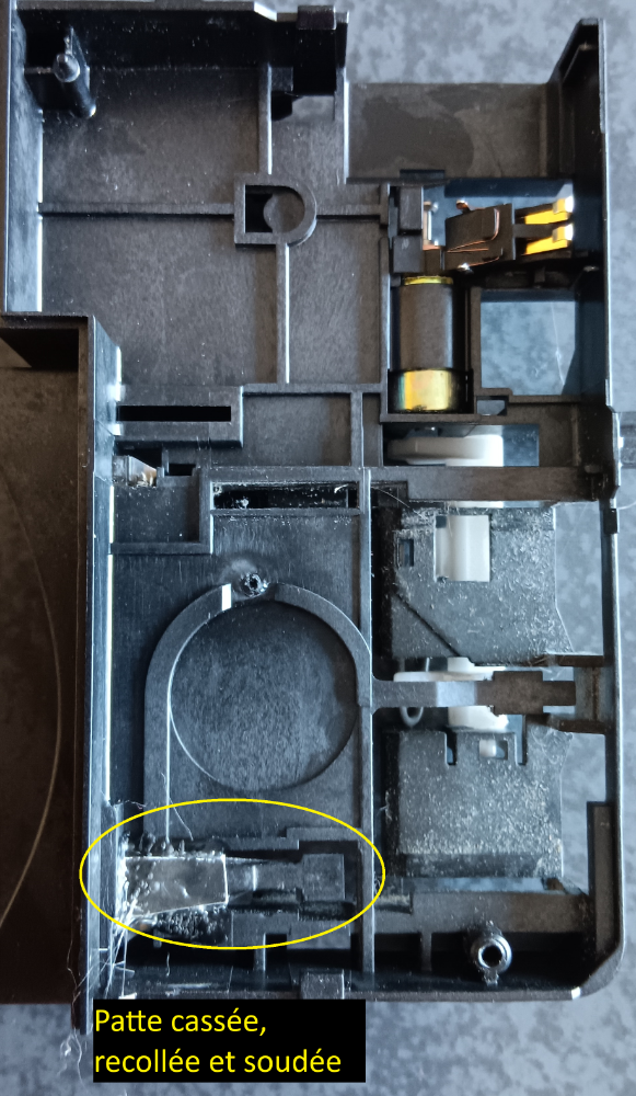 En retirant cette partie, je me suis aperçu qu'une patte d'appui sur un bouton était cassée, j'en ai profité pour la refixer Voili voilà, plus qu'à remonter dans le sens inverse