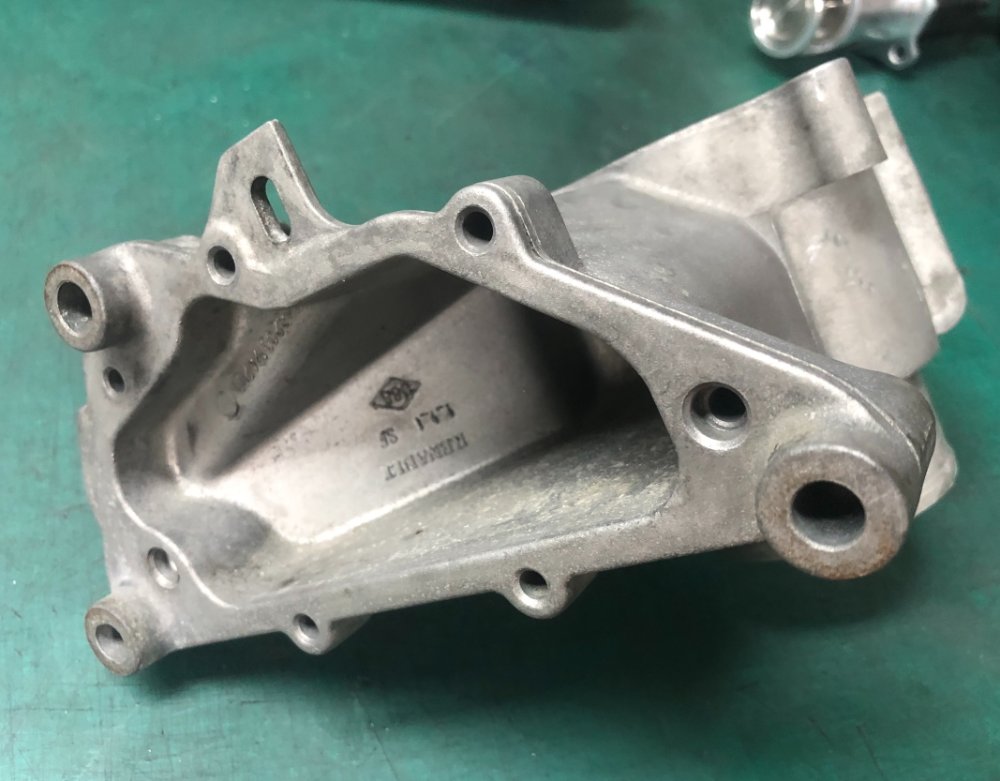 - Il reste la vis (douille de 10’’) de la patte de fixation sur la partie AVG inférieure, qui part de la pompe de direction assistée