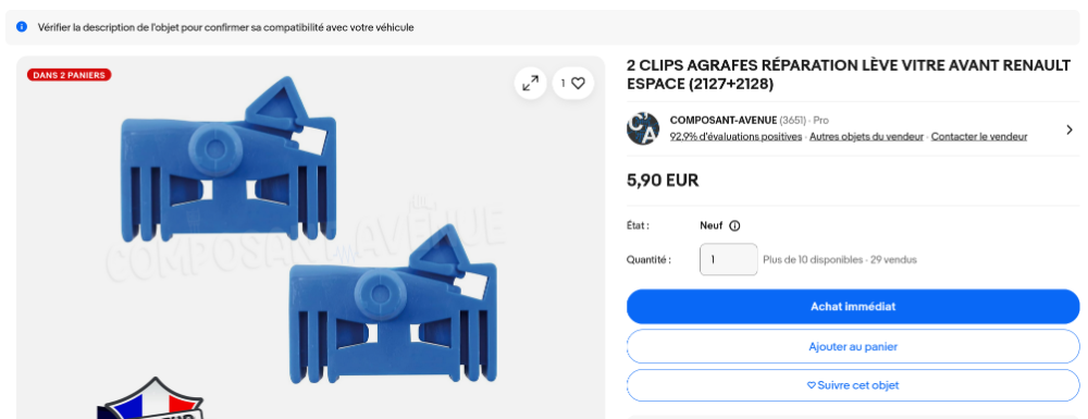 J’ai acheté sur ebay pour 39€le système de leve vitres et c’est facile à faire livraison en 2 jours ouvrée.