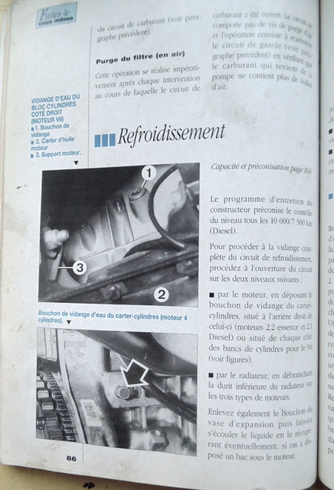 Ya deux boulons de vidange sur le bloc moteur pour vider le LDR l'as tu fait car juste avec le radiateur c'est trop juste.