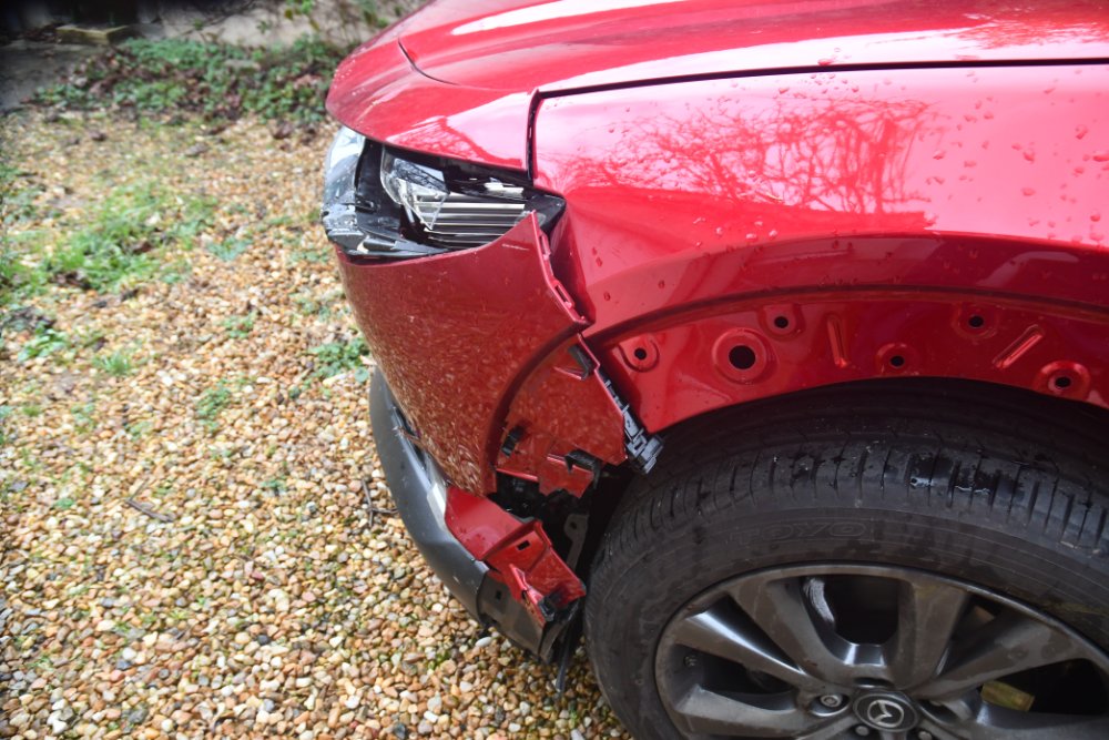 Ah mince. Heureusement, juste un peu de tôle froissée.