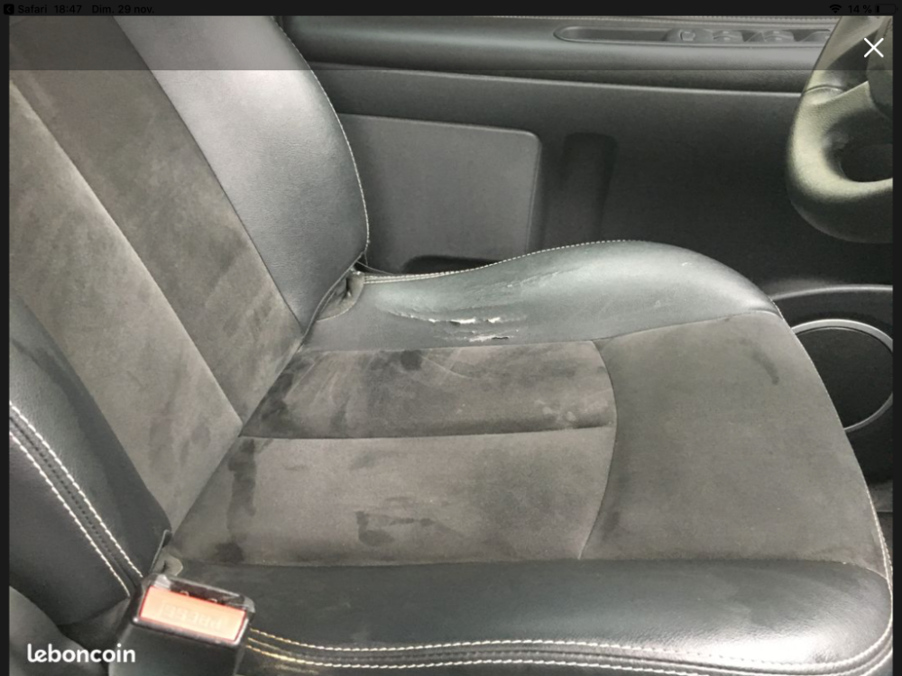 D'après les photos des annonces, c'est quand même rarement autant abîmé que sur ta photo: souvent c'est juste légèrement craquelé sous le bourrelet du siège conducteur, comme sur mon Alyum plus 2009 (170 000 km) simili-cuir / alcantara: