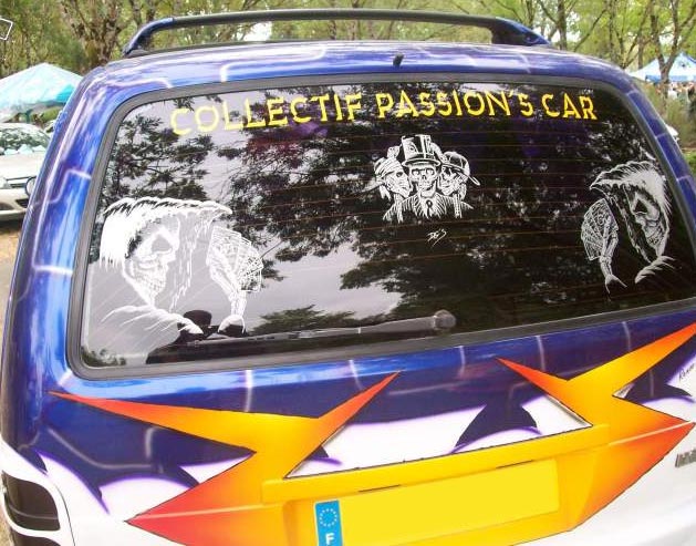 jantes gladiateurs 18 pouces,pneux bonne etat,peinture personalisee aerographe,vitre arriere avec gravures,vitres teintes par professionnelle,embrayage refait,rotule changer,pot raceland,deflecteur d'air portes avant,volant bois,sieges av pivotant,paupieres de phares avant et arrieres,