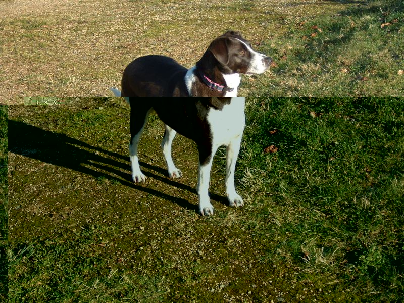 Le moyen (que 25 kilos !) : modèle SPA Standard, origine inconnue, age inconnu, provenance : passé sous une voiture et amené en morceau à la SPA), race inconnue ou enfin toutes les races, avec une dominante Border Collie (qui dit le véto !) :)