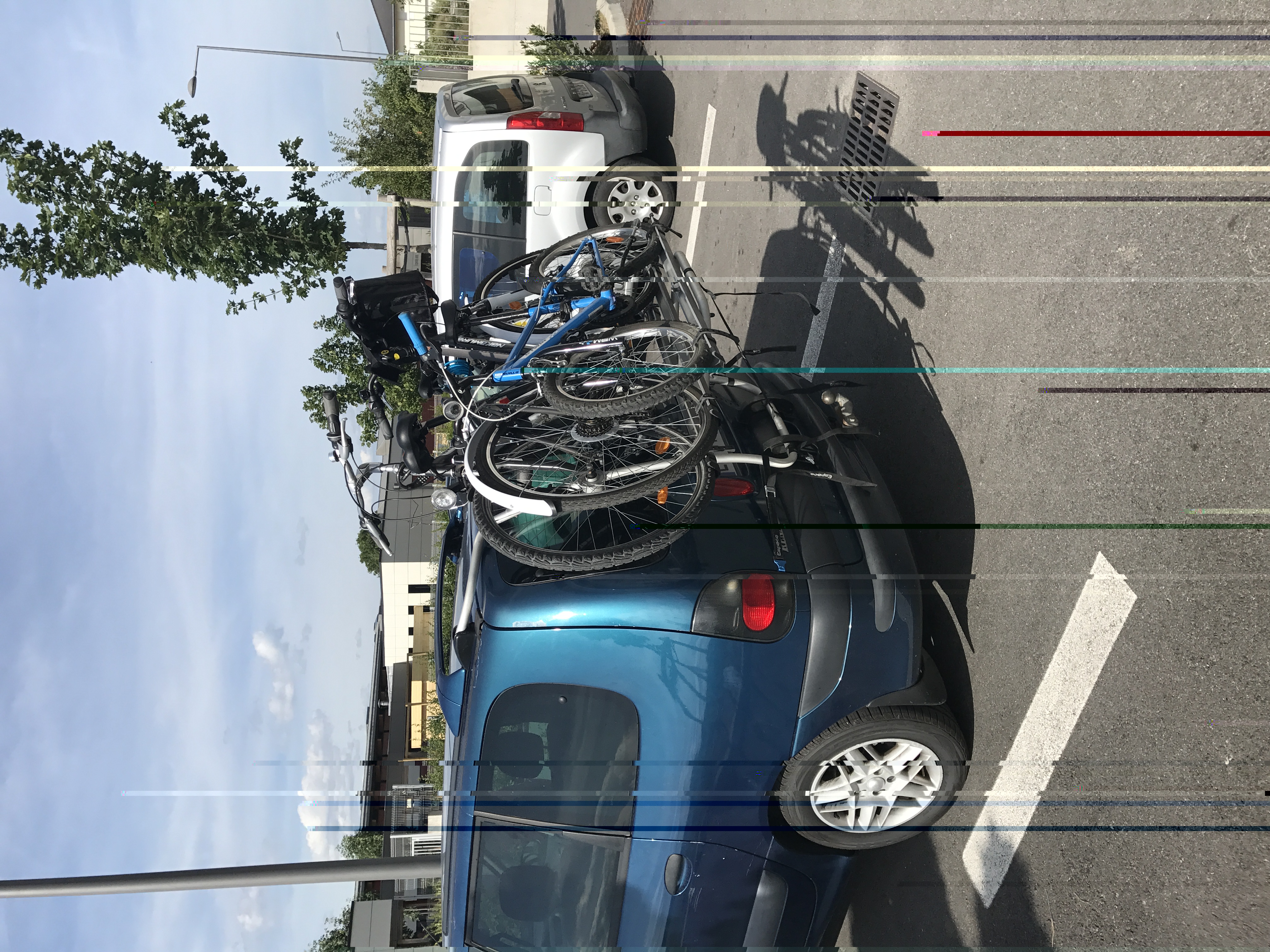 Et nous voilà reparti avec le porte vélo dans l'espace (deux sièges rabattus pour que ça rentre dedans)