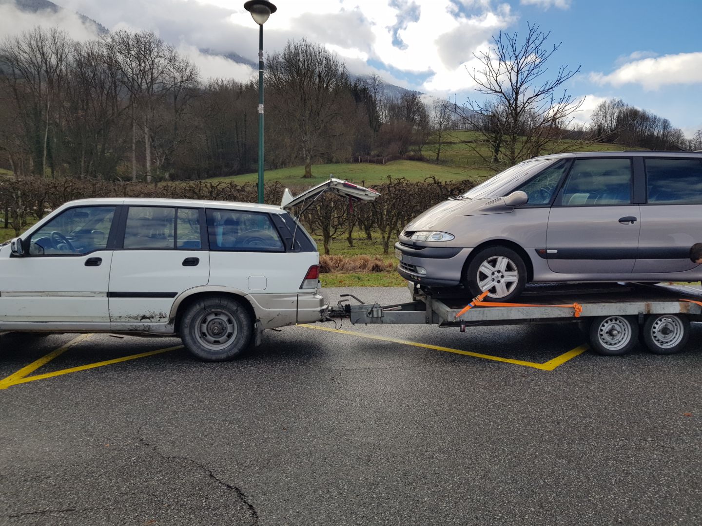 J'ai retrouvé les photos de mon remorquage : remorque avec 2 essieux :wink: