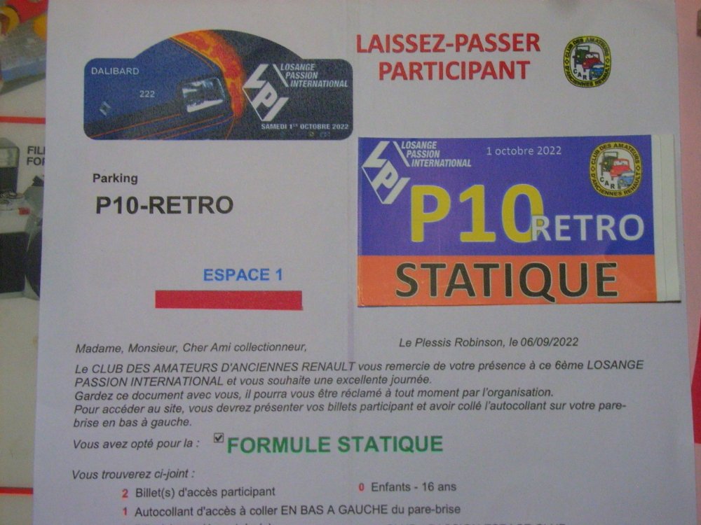 voici ce que j'ai reçu au courrier du CAR IDF losange Passion International