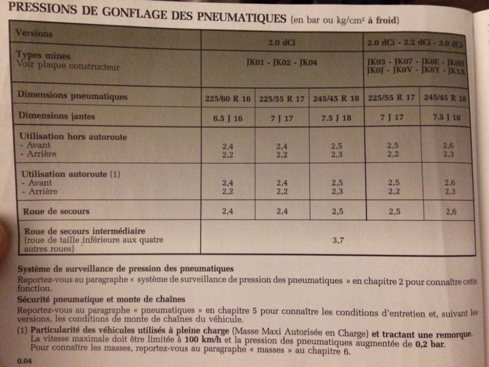 Pour moi, il n'y a pas 10000 questions à se poser: tu as un 2.0 dci 130, donc JK02, et selon la notice que j'ai posté il y a quelques posts plus haut, tu peux monter des 16", des 17", ou des 18".