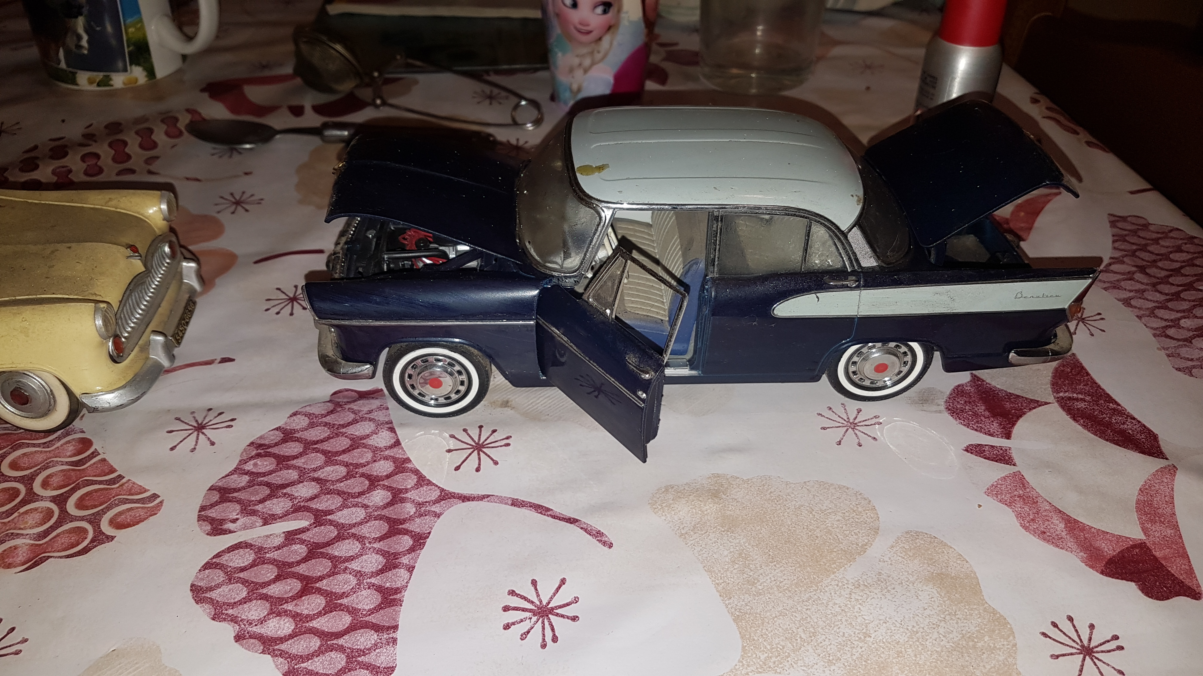 à propos de la Versailles, j'ai eu en cadeau de Noel il y a XX ans, une Versailles bleue clair/foncé téléguidée de la marque GéGé, un peu plus de 20 cm de long, un boitier rectangulaire avec la pile dedans, un volant et des leviers genre clignotants pour les vitesses et le sens de marche... des pneus à flancs blancs, la classe !