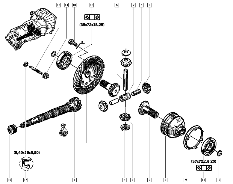 Concernant mon souci de sautillement de l'aiguille de vitesse, j'ai trouvé un schéma de cette partie sur boite NG3 095...