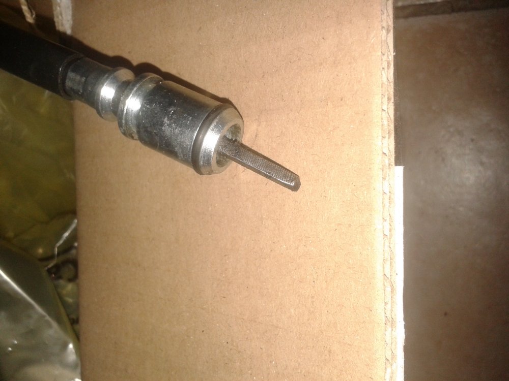 Mais le haut de cet "axe" est bien net et plat, pas du métal cassé, et il semble vraiment rond. Donc peut être pas le reste d'un ancien carré mâle cassé à l'intérieur.