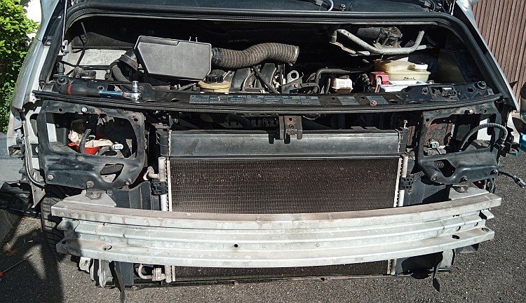 le radiateur peut sortir entre la traverse avant (pare-choc) et la traverse supérieure (attention à la patte de fixation de calandre)