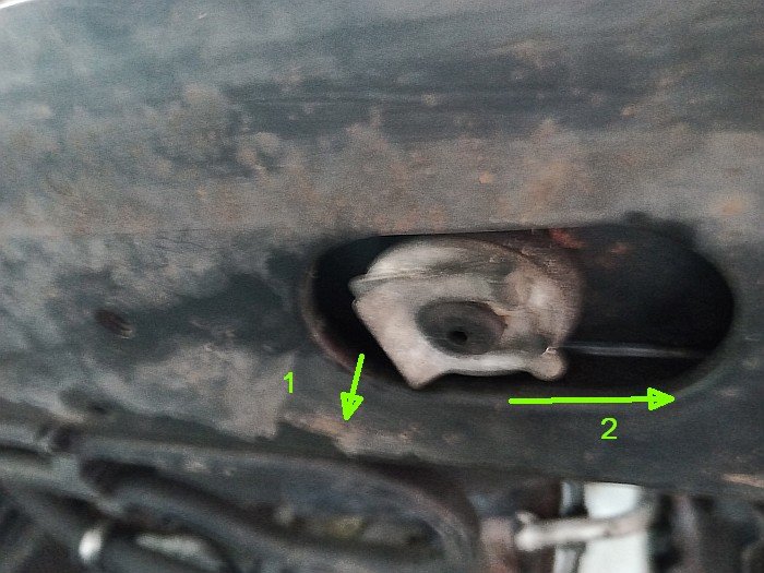 - défaire les deux vis de fixation du radiateur au niveau des silent blocs supérieurs