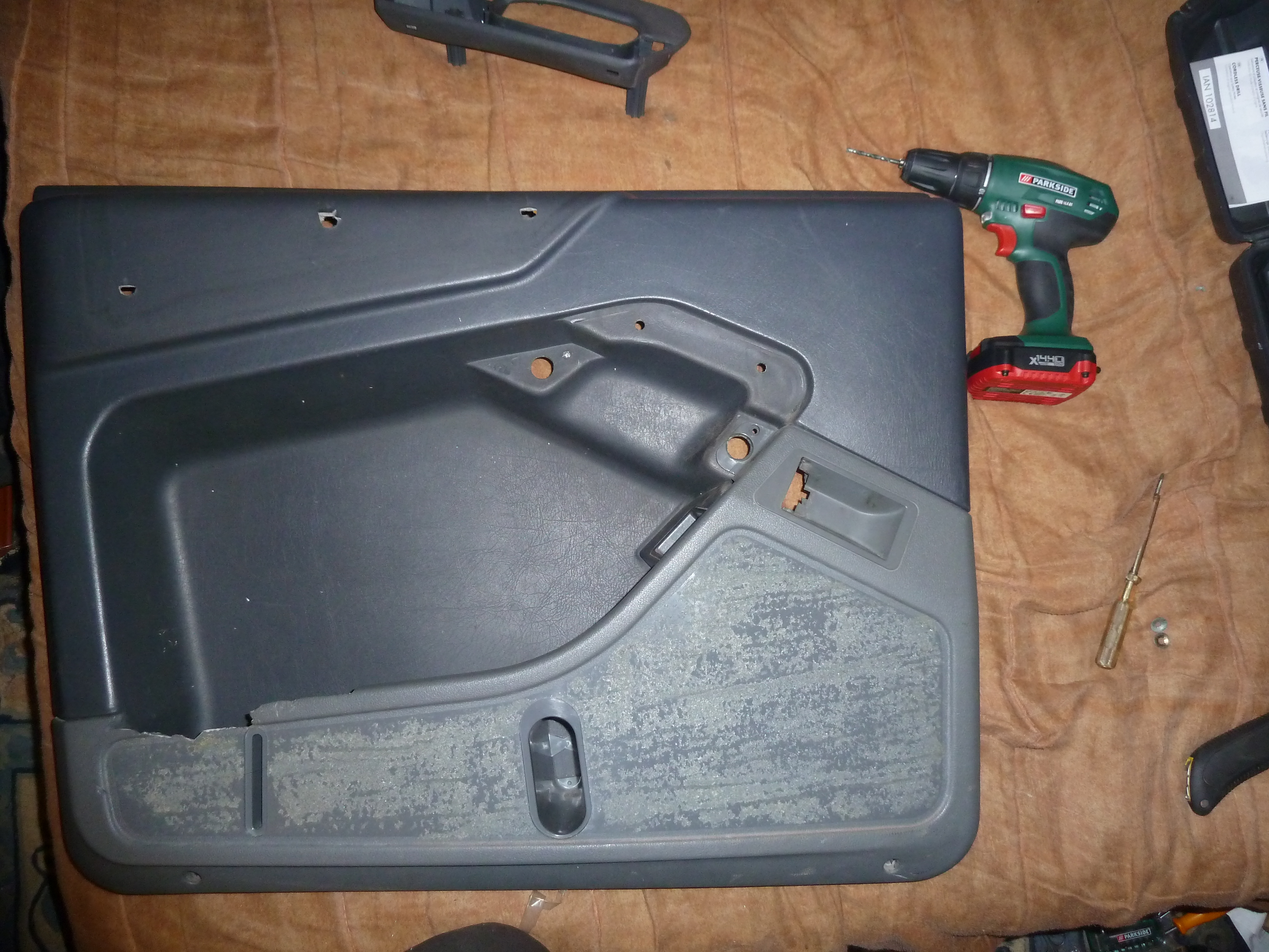 Vu qu'il pleut toujours, je me suis mis a démonter le panneau de porte (un que j’avais mais qui est HS) pour voir comment je pourrai modifier le logement pour le HP...