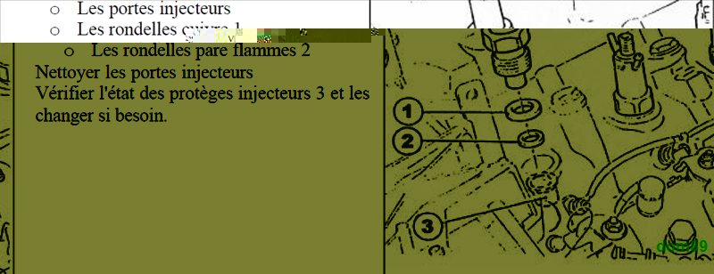 +1 ... rondelle pare flamme entre l'injecteur et la culasse