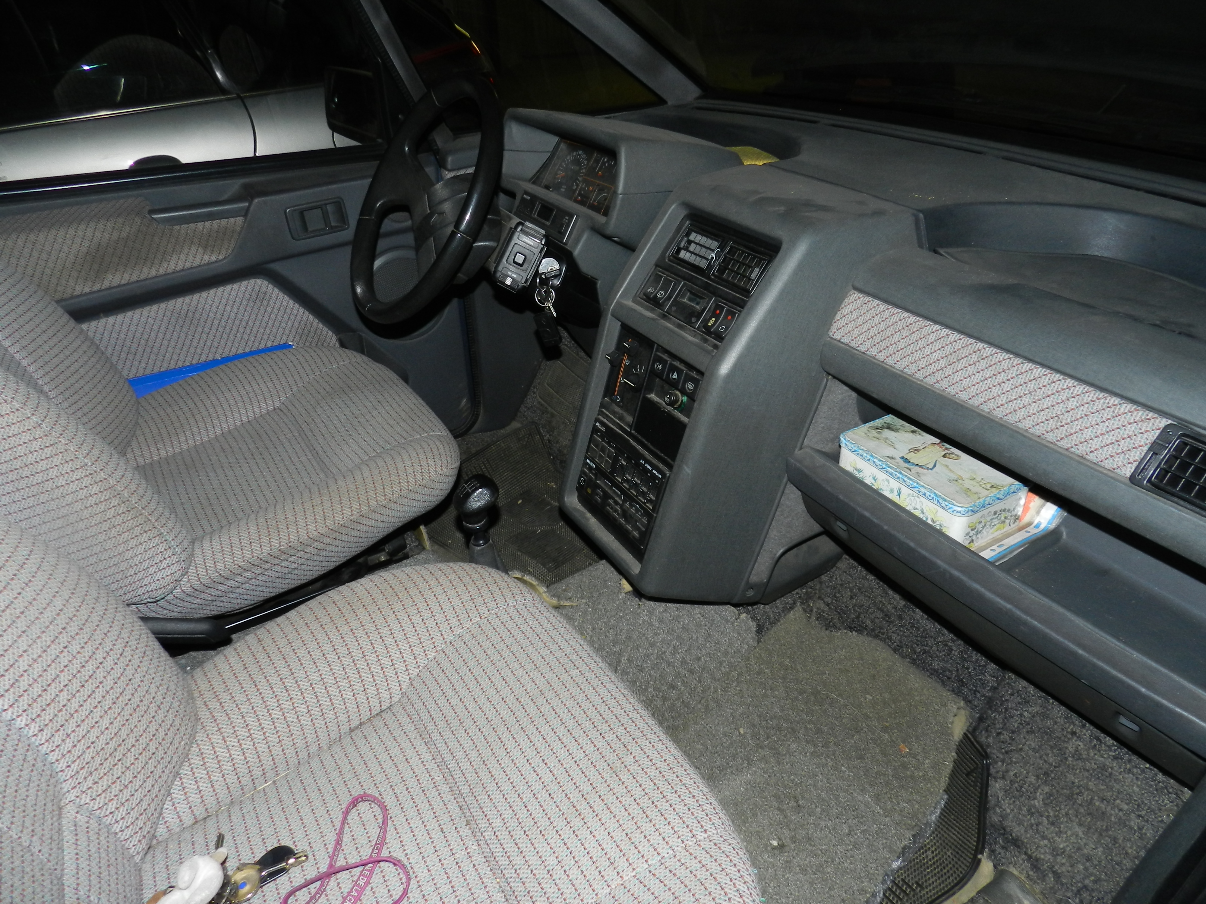 J'ai par chance trouvé dans une casse près de chez moi un TSE gris titane qui a fait don de nombreuses pièces : pare-choc avant, montre, boutons de lève vitre, rétros électriques et leur commande, 2 sièges (en cas de transport ) , toutes les serrures, la poignée de coffre, la casquette de tableau de bord et les garnitures tissus de 3 portes. J'ai donc monté sur le mien les garnitures tissus, la montre, les moteurs et la casquette le reste servant de stock.