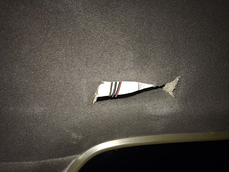 Commencez par retirer le fusible de l'éclairage intérieur. Ensuite, repérez à la main le creux dans la carrosserie au dessus de la custode, derrière la poignée de maintien, et marquez le avec votre feutre (dans mon cas, la moquette était un peu sale et j'ai pu la marquer juste en passant la main