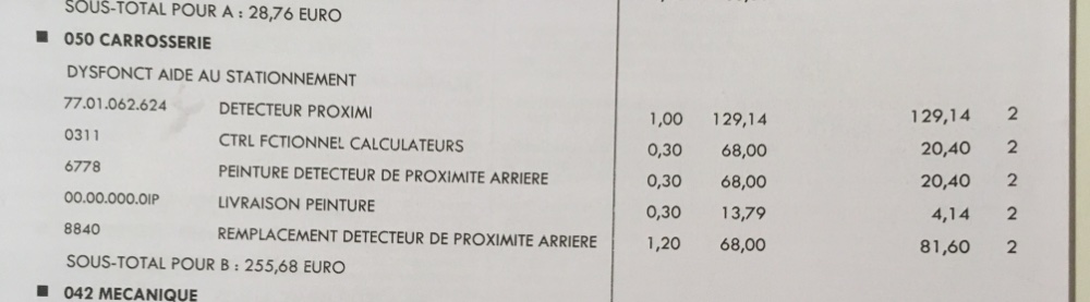 Non je n'ai pas calculé le PRK, juste les frais de garage et déjà là, ça faisait peur