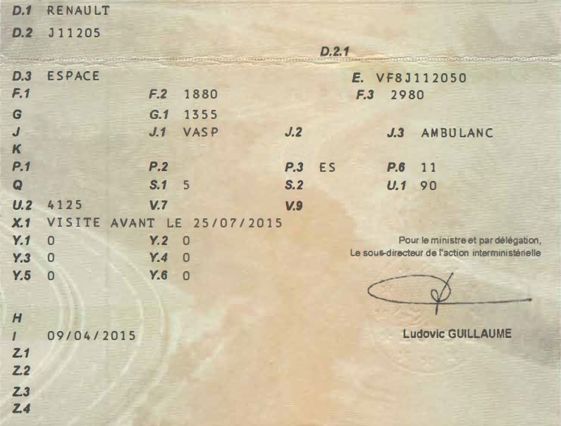 Lors de l'achat de mon Ambulance j'ai fait refaire ma carte grise ou figure VASP et AMBULANC .