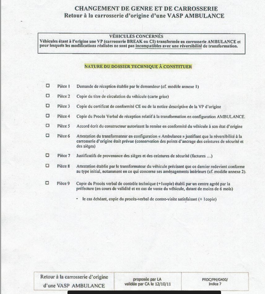 Mais lors de mon dernier CT le contrôleur m'a signifié que je serais obligatoirement en contre visite car un particulier non ambulancier ne peut avoir une carte grise VASP Ambulance.