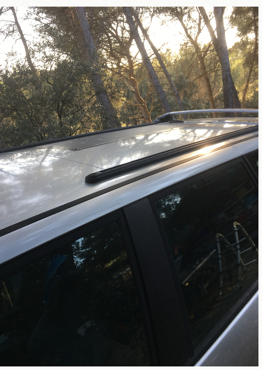 Pour le montage c'était simple. La partie solaire est bordée par une bande blanche dans laquelle il y a déjà des œillets. J'ai positionné mon panneau au niveau du rail des barres de toit et percé 2 trous supplémentaires correspondant aux vis de montage du rail. Apres avoir soulevé le rail j'ai glissé le panneau dessous et revissé les vis du rail en prenant le panneau en sandwich. Ainsi il est bien solidarisé au toit sur un coté. Ensuite j'ai juste scotché les trois autres côtés au Gorilla Tape, un ruban adhésif très puissant de 4,5cm de large. J'ai testé en passant le Karcher 5 ou 6 fois dessus, cela ne bouge pas. En cas de souci je peux facilement changer l'adhésif de toute façon.