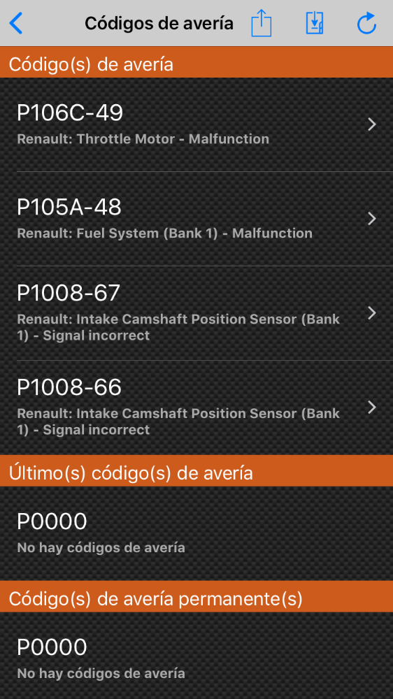 Apès il faut bancher un vrai diag renault. Dans l'affichage du tien, je ne comprends pas pourquoi,, il y a le même descriptif pour 2 codes différents P1008-67 - 66