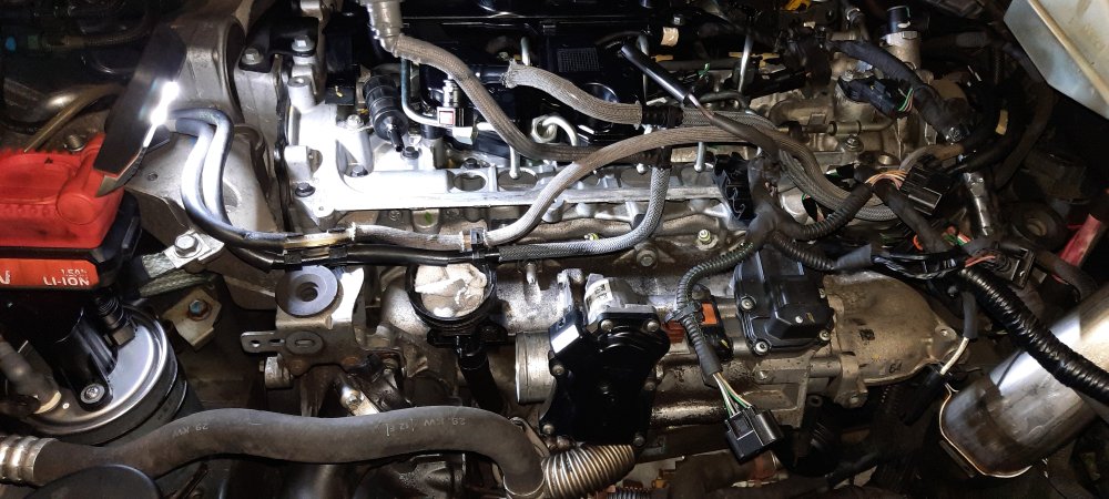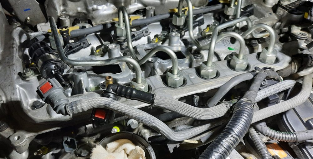 dépose du système, remplacement des injecteurs (et aussi des bougies de préchauffage et le débimètre d'air).