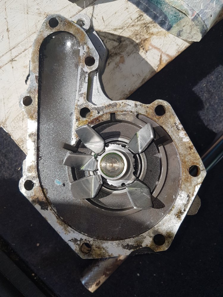 Les ailettes de cette ancienne pompe SKF sont en acier inoxydable aimantable, alors que la nouvelle pompe a eau Valeo a des ailettes qui semblent être en aluminium.